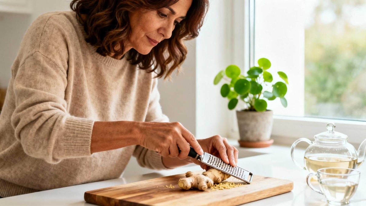 La vapeur s'élève de la tasse fumante. Il est 22h30, la cuisine silencieuse accueille ce rituel ancestral revisité par la science moderne. 2 cuillères à café de gingembre frais dans 200 ml d'eau bouillante : cette infusion active la lipolyse nocturne pendant 8 heures.