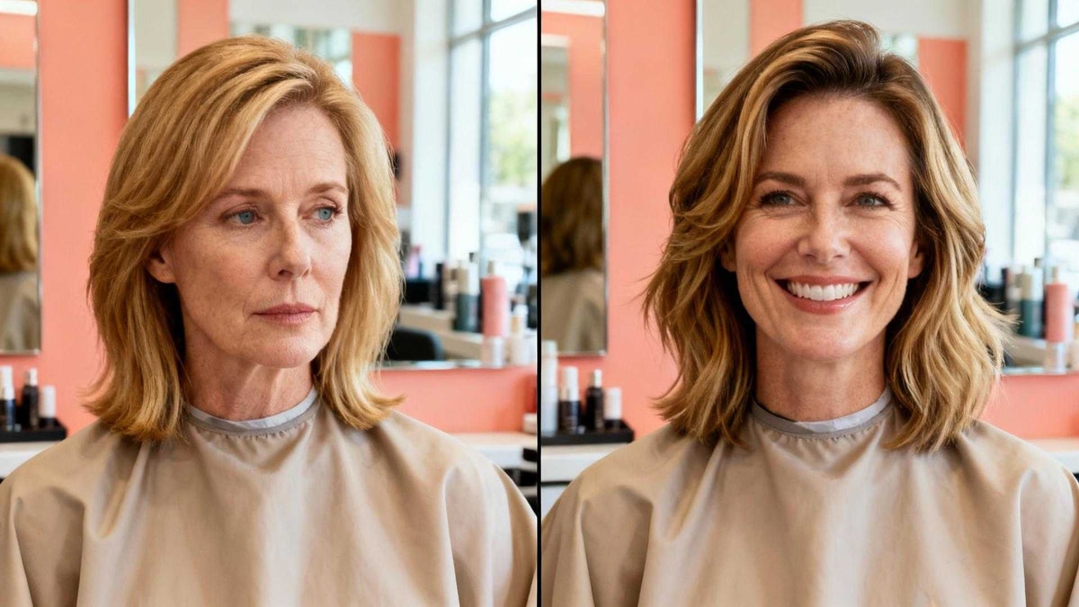 Une cliente de 52 ans sort du salon de coiffure. Elle se regarde dans le miroir et découvre quelque chose d'étonnant. Son regard s'est ouvert, ses pommettes sont redessinées, son visage rayonne d'une nouvelle jeunesse. Pas une injection, pas un bistouri. Juste une coupe structurée qui utilise trois mécanismes capillaires scientifiquement validés par les champions français de la coiffure.
