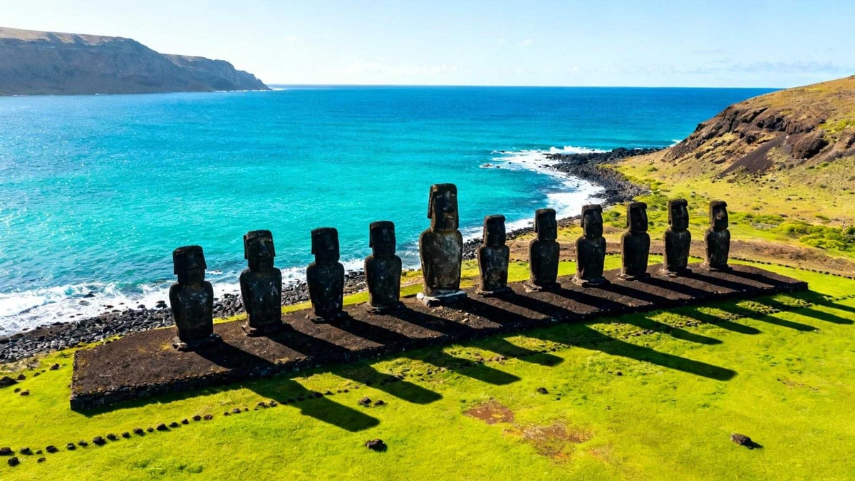 L'avion de LATAM survole 3 525 kilomètres d'océan Pacifique avant d'apercevoir un triangle de terre volcanique. Mataveri, seul aéroport d'une île perdue entre le Chili et Tahiti. Puis cette vision saisissante : quinze silhouettes de basalte noir dressées face à l'infini bleu.