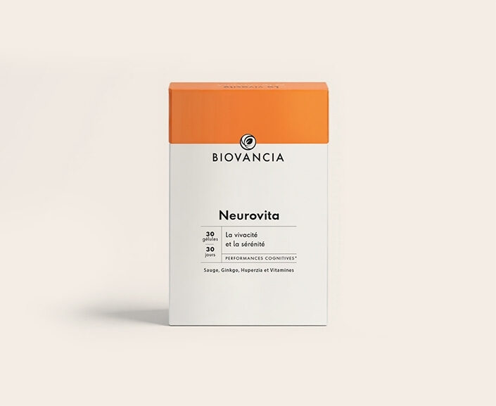 Neurovita de Biovancia est un complement pour la sante cognitive. 5 actifs cibles : Huperzine A 20mg, Ginkgo biloba 80mg, Sauge d’Espagne 120mg, Vitamines B5 et B12. Triple mecanisme d’action sur la memoire et la concentration.