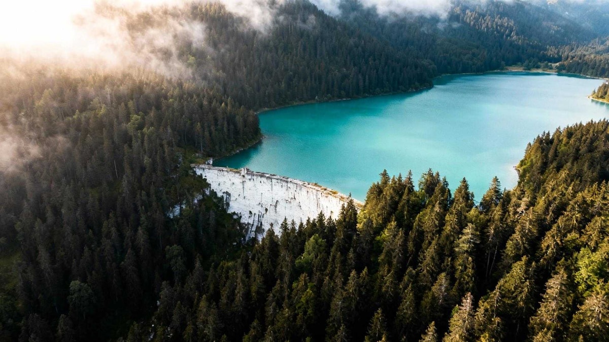 L'aube efface les berges dans la brume. Seuls émergent les épicéas noirs et le barrage de chaux blanche. Quelque part sous ces eaux turquoise dorment des caisses de munitions que plus personne ne cherche.