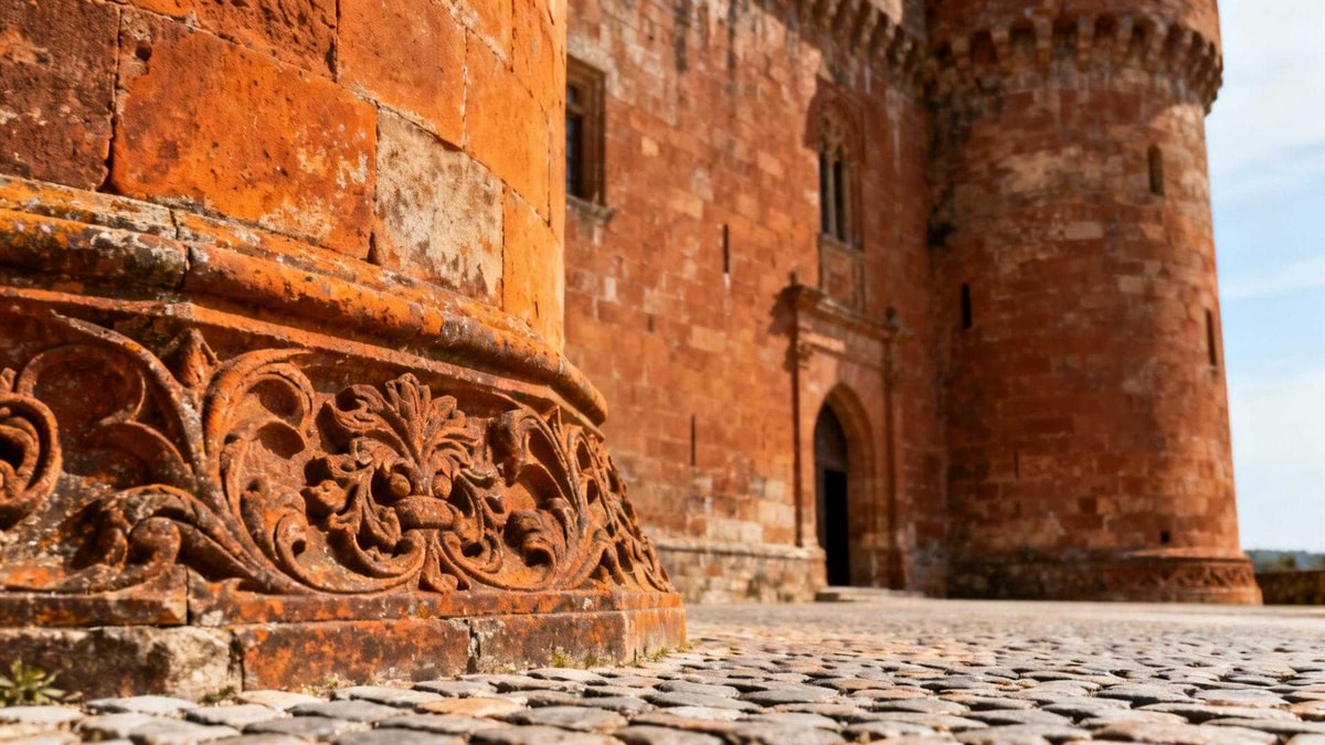La Tour Grise affiche sa particularité dès le premier regard. Construite entièrement en grison, elle arbore des tons chauds impossibles à trouver ailleurs. Cette pierre rousse change de nuance selon l'heure.