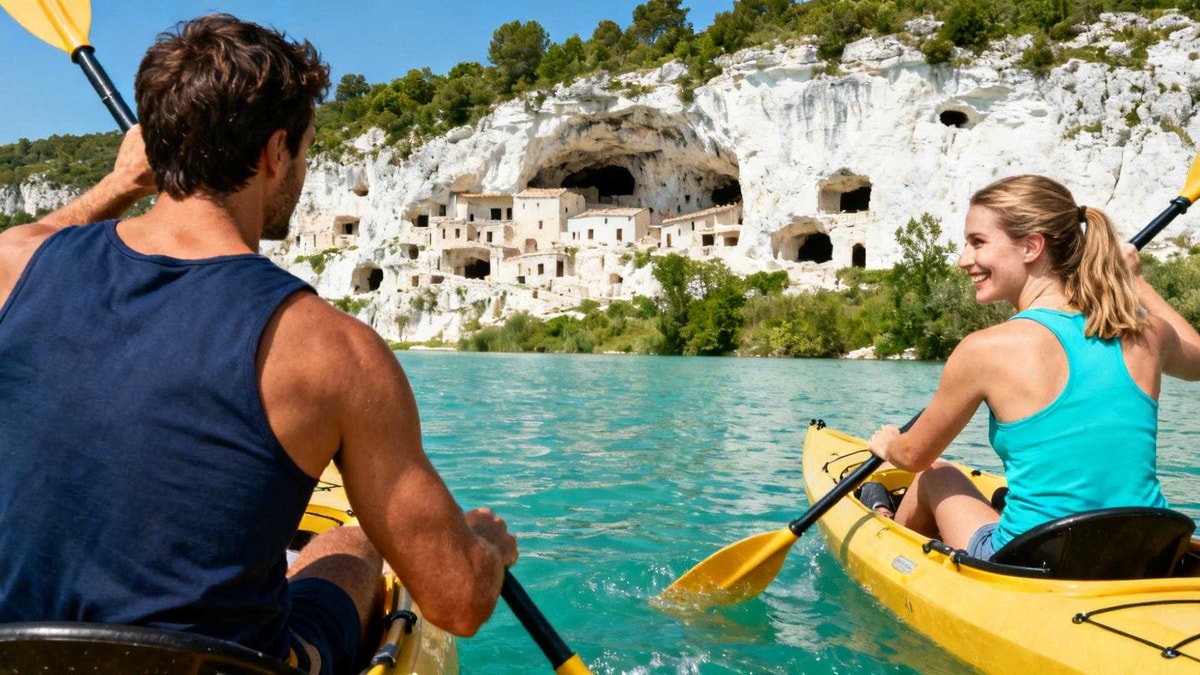 Dernière lumière rasante sur les falaises de calcaire blanc. Les pagaies reposent sur les berges humides de terre fraîche. Quelque part sous ces roches dorées, vingt-cinq grottes gardent les premiers gestes d'artistes inconnus. Vous venez de naviguer leur galerie à ciel ouvert pour quinze euros en poche.