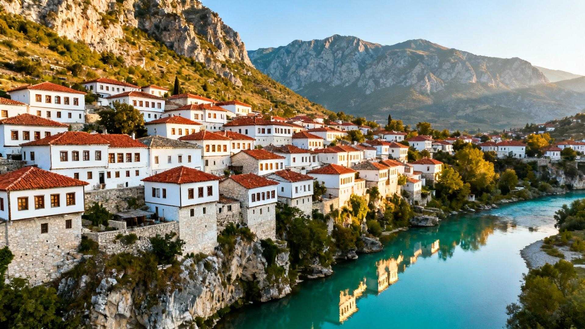 Morgenlicht vergoldet die weißen Häuserfassaden entlang des Osum-Flusses. Tausend Fenster spiegeln sich im stillen Wasser — nicht als Instagram-Metapher, sondern als architektonische Realität. 40.665 Einwohner bewahren hier seit 2.400 Jahren ein osmanisches Erbe, das 2008 UNESCO-Status erhielt.