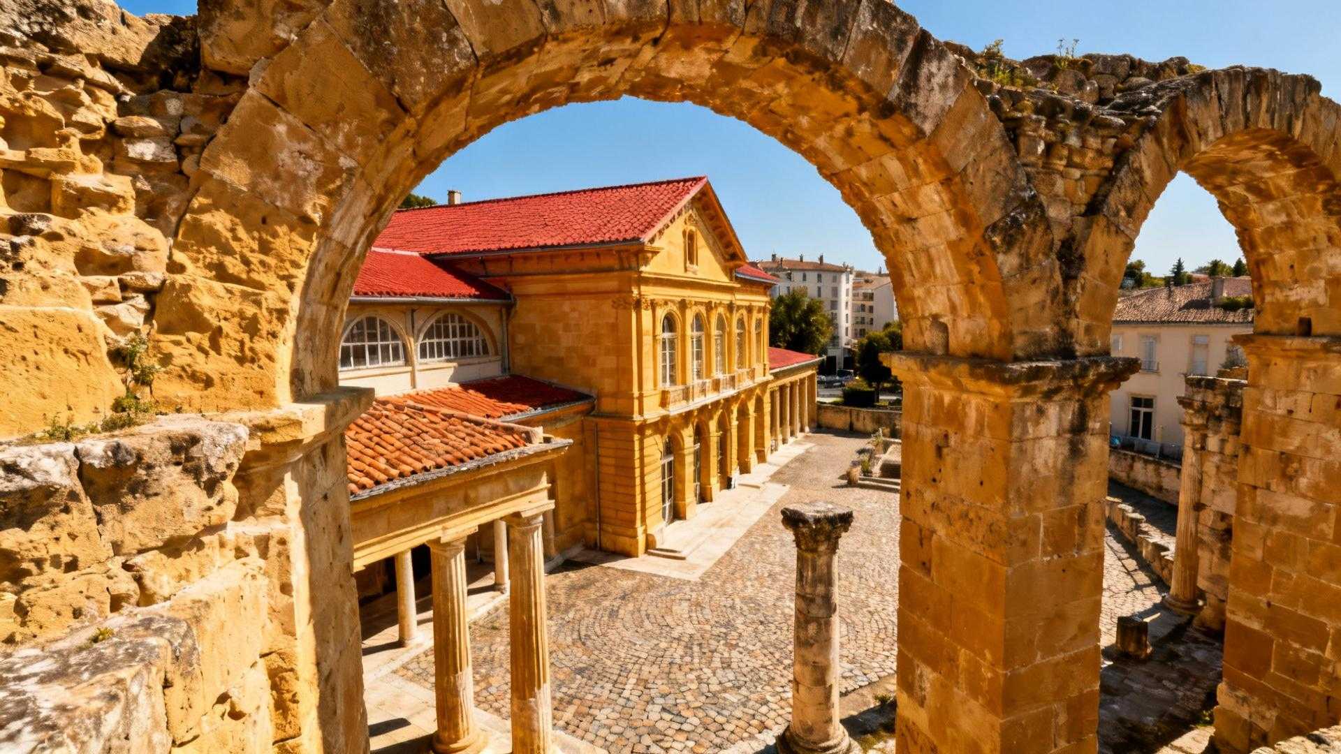 Belle-Époque-Architektur säumt gepflasterte Gassen zwischen Theater André Messager und den antiken Thermalbädern. Die gallo-römischen Ruinen liegen direkt neben modernen Spa-Anlagen „Les Nériades“. Rote Ziegeldächer kontrastieren mit dem warmen Sandstein typisch für die Auvergne-Region.