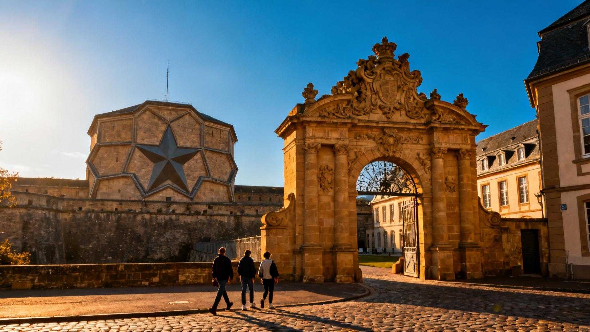Morgenlicht vergoldet die barocken Sandsteintore von Saarlouis. 37.667 Einwohner bewahren seit 1680 eine sechseckige Festungsstadt, die französische Eleganz mit deutschem Handwerk verbindet. Während Straßburg täglich von Touristenmassen überrollt wird, kennen wenige diese Stadt im Dreiländereck.
