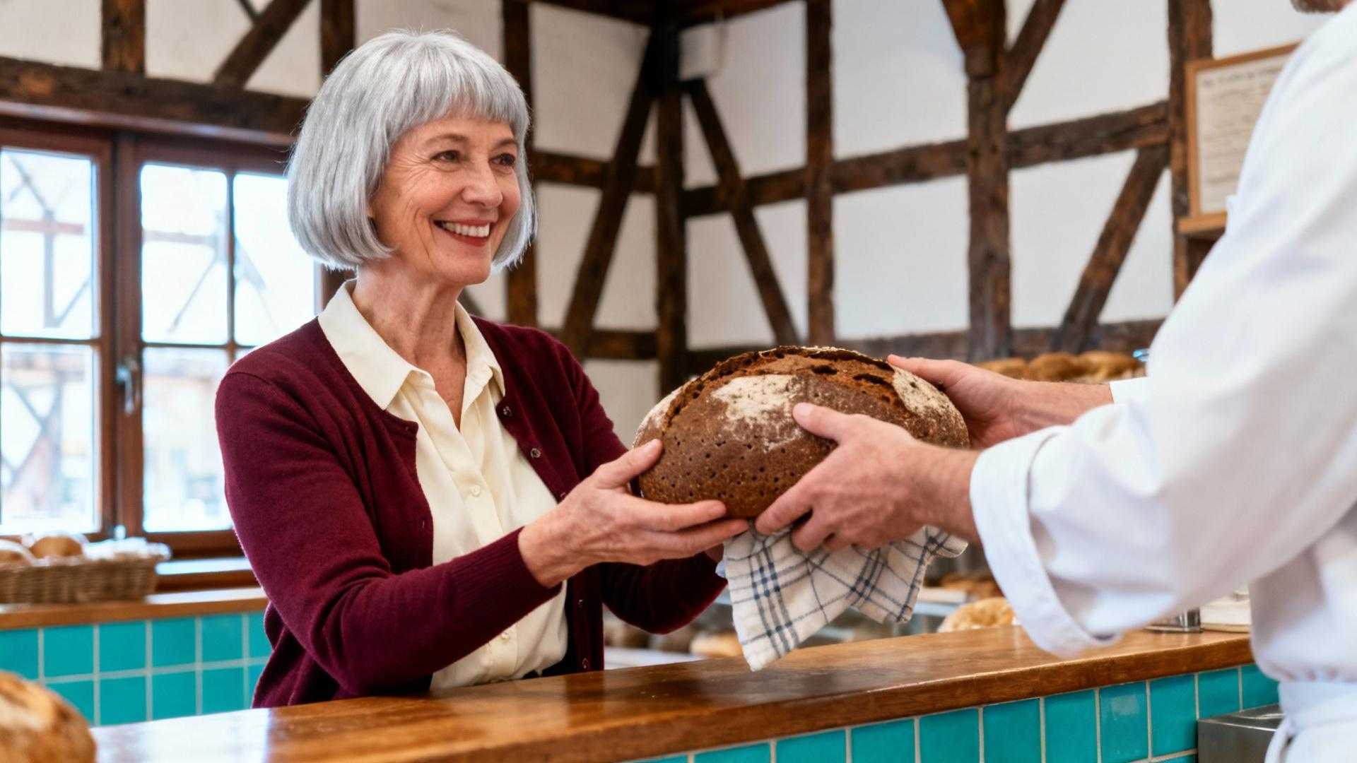 Souvenirläden verkaufen Pumpernickel für 12 € pro Kilogramm. Die Bäckereien bieten das gleiche Brot für 4,20 € an. Touristen fotografieren das Fachwerk. Soester kaufen das Brot und gehen arbeiten.