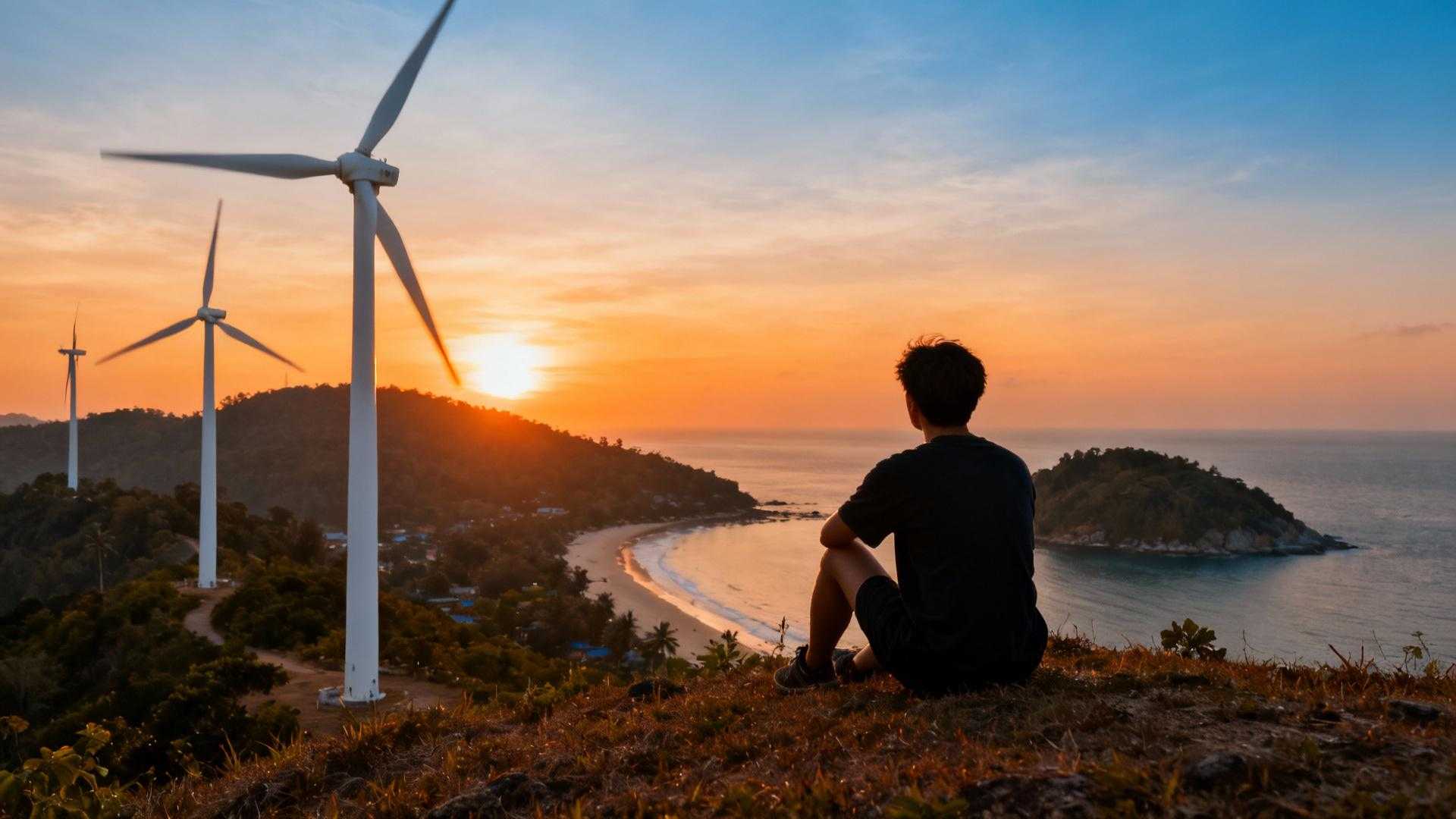 The only Phuket viewpoint where wind turbines frame perfect sunsets – locals call it Thailand’s renewable paradise