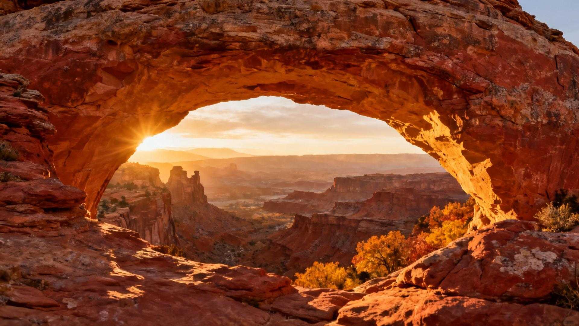 This tiny arch’s Navajo Sandstone composition creates a unique light-catching effect at dawn. The east-facing orientation allows morning sunlight to illuminate the arch’s underside while simultaneously backlighting the vast canyon beyond. The iron oxide minerals in the sandstone intensify the warm colors, creating that signature glow that’s made Mesa Arch famous among landscape photographers worldwide.