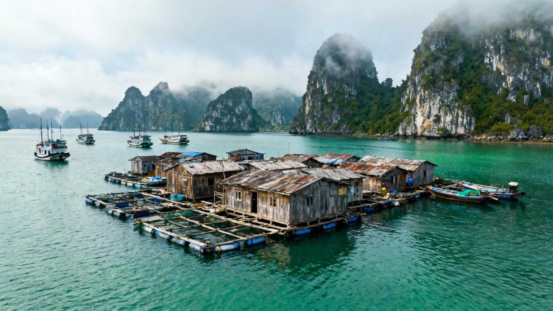 While luxury Halong Bay cruises charge upward of $200 per night for sanitized “floating village experiences” with staged photo opportunities, Cua Van operates on an entirely different rhythm. Here, 176 households live entirely on boats, maintaining fishing techniques their ancestors perfected before the Ming Dynasty ruled China. The morning I arrived by local guide boat—a $45 day trip from Halong City’s wharf, 20 kilometers north—mist hung between the karsts so thick you could barely see the wooden houses until you were among them.