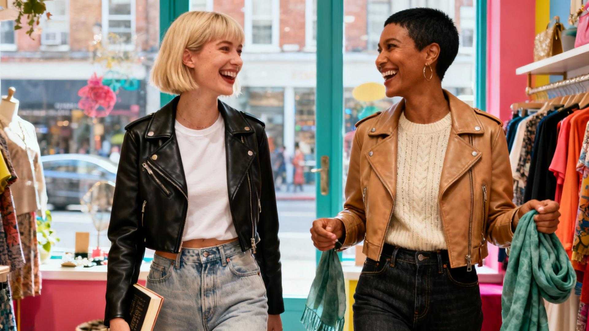 Walk down any street in New York or Los Angeles, and you’ll spot them: cropped leather bombers that hit just below the bust, boxy aviators with oversized lapels, and tailored moto jackets that barely graze the waistline. Emily Ratajkowski pairs hers with high-waisted jeans and a crop top, while Sophie Turner throws one over a slip dress for instant edge.