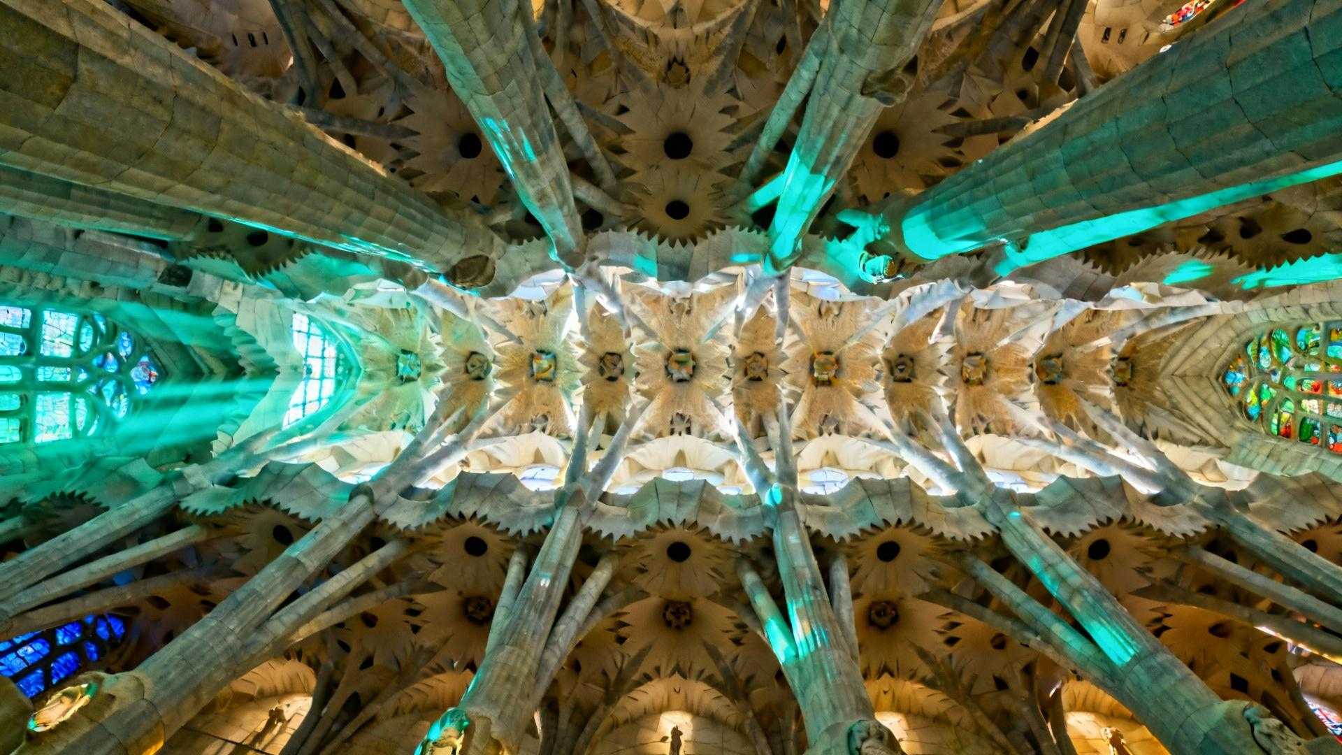 Gaudí no diseñaba, traducía la naturaleza a arquitectura. Cuando miras las 56 columnas arborescentes de la Sagrada Família, no ves soportes: ves troncos que se ramifican hacia el cielo. Las bóvedas hiperbólicas imitan la estructura de hojas superpuestas.