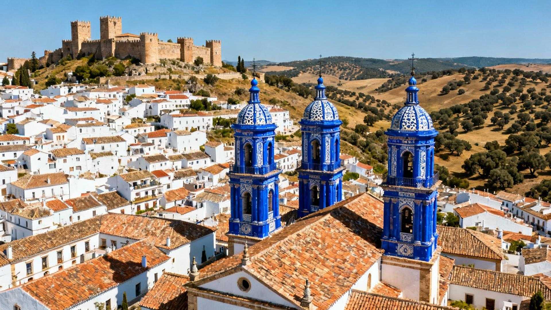 Lo que distingue a Jerez de cualquier pueblo español son sus cuatro iglesias barrocas coronadas por torres revestidas de azulejos azul cobalto que brillan contra el cielo extremeño. Fachadas blancas encaladas contrastan con estos faros visuales únicos en la geografía nacional.