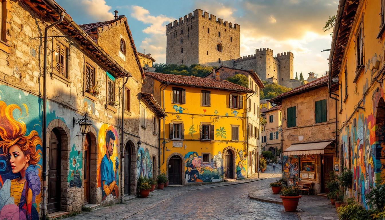 Ik parkeer mijn kleine huurauto in een verlaten hoek van het plein en stap uit in de gouden ochtendzon van Dozza. Hier, op slechts 40 kilometer van Bologna, vind ik mijn nieuwste ontdekking. Dit middeleeuwse dorpje in Emilia-Romagna pronkt met meer dan 200 verse muurschilderingen die tijdens het septemberfestival van 2025 net zijn voltooid. Terwijl ik door de nauwe straatjes wandel, realiseer ik me dat het oktober 2025 perfecte timing is – alle nieuwe kunstwerken zijn zichtbaar zonder de festivaldrukte. Elk gebouw vertelt een verhaal, elk straathoekje onthult een meesterwerk.