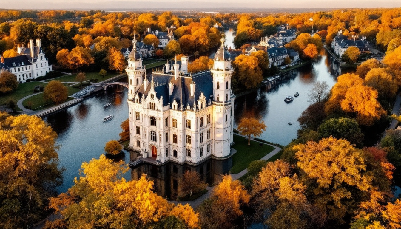 De waterrijke omgeving zorgt voor een unieke culturele bonus: de architectuur reflecteert prachtig in het rivierwater, wat het effect verdubbelt. En in de herfst van 2025 – precies nu – transformeren de eeuwenoude bomenlanen langs de rivier in een gouden corridor die de witte gevels doet oplichten.
