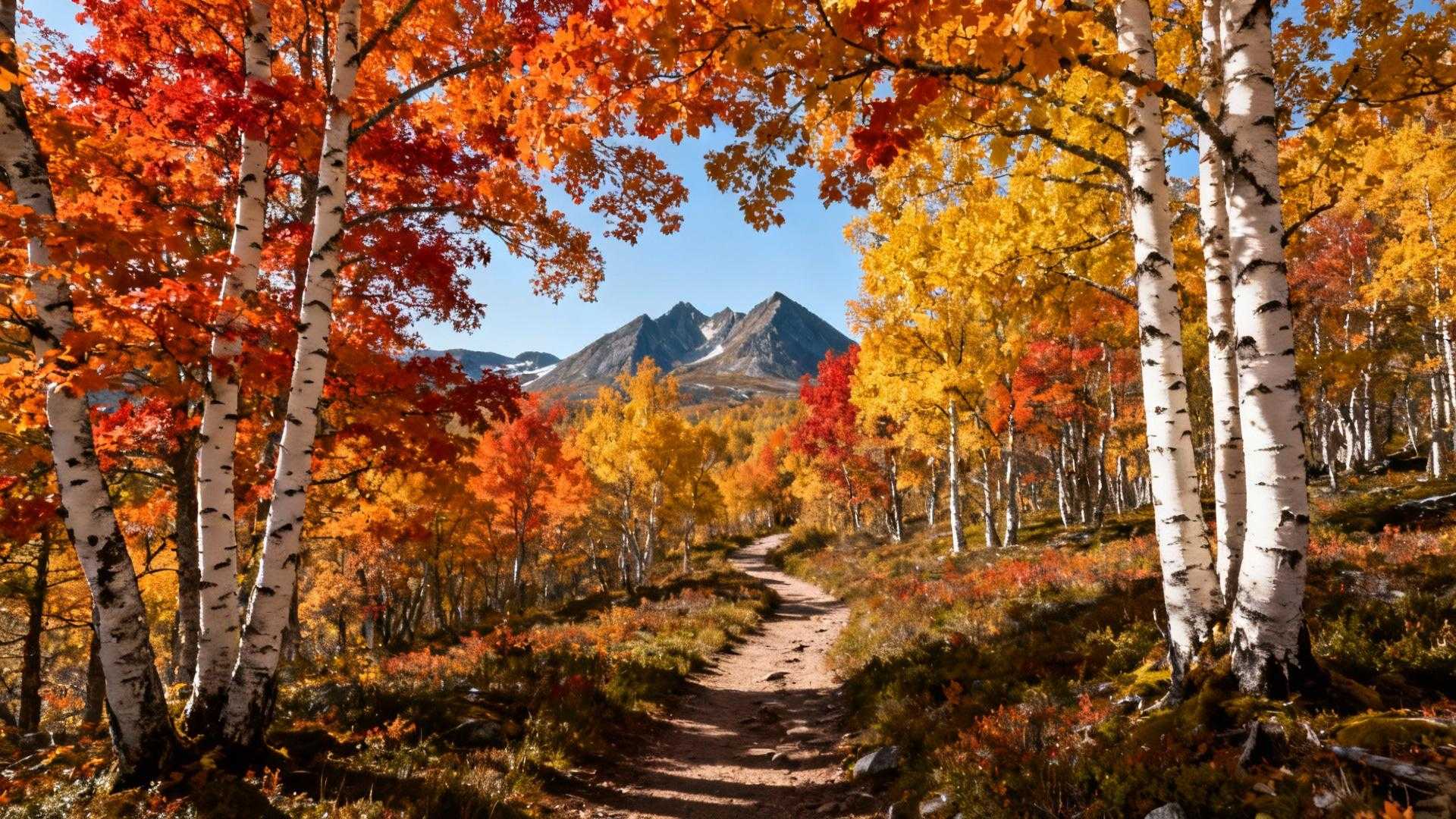 Septemberruskan förvandlar fjällbjörken till gul-orange-röd eldshow. Färgexplosionen pågår 2-3 veckor med toppen 15-28 september.