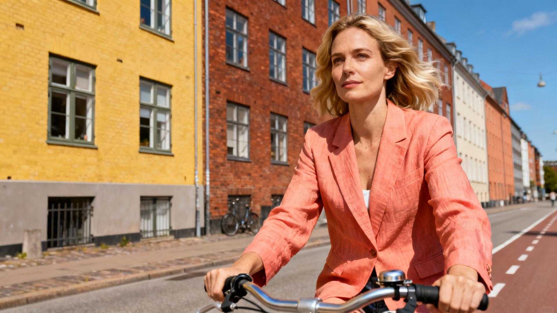 07:00 rullar Köpenhamn igång på två hjul. 385 km cykelbanor genomkorsar staden, skilda från bilar och fotgängare. Barn cyklar själva till skola vid 8 år. Vuxna pendlar 12 km utan svettas tack vare platt terräng och genomsnittsfart 15 km/h.
