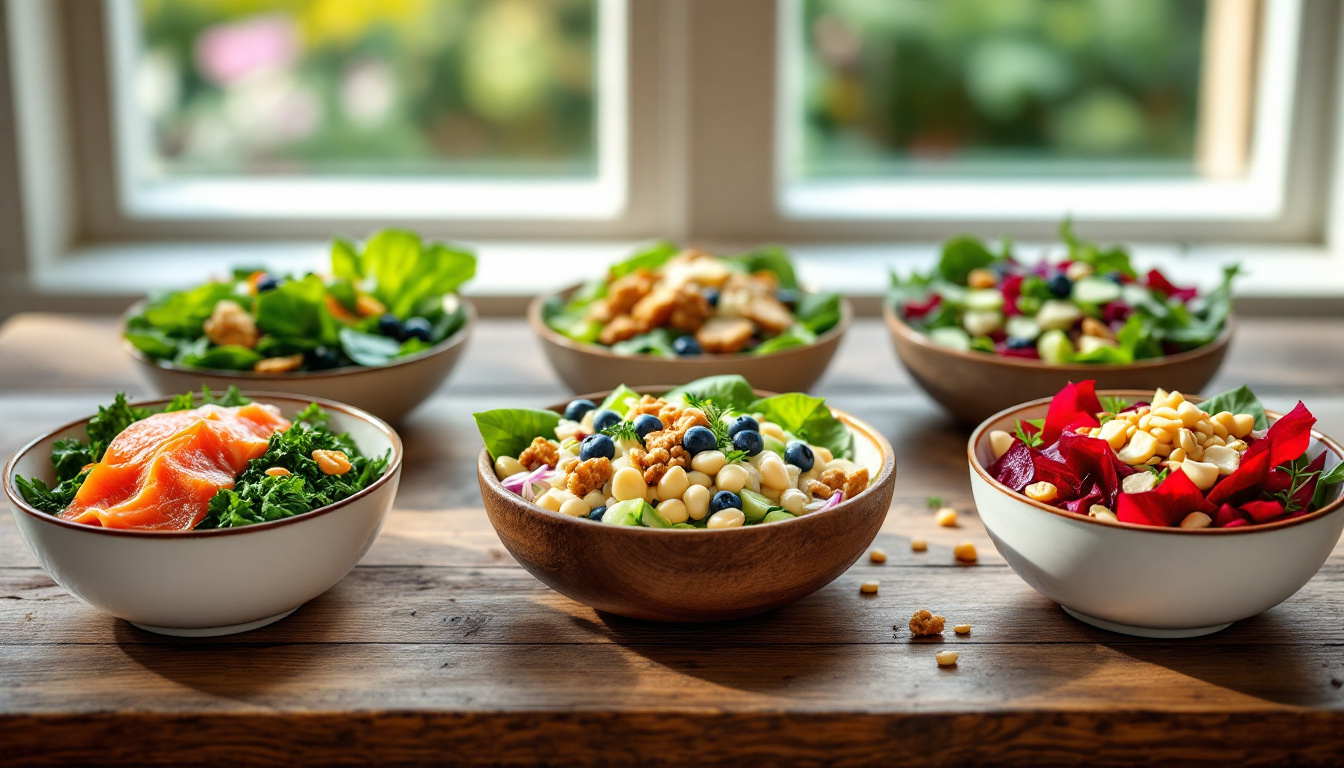Sallad nummer ett kombinerar rökt lax, grönkål och kallpressad rapsolja. Studien visar att denna kombination ger 6,2 timmars mättnad jämfört med köttfärssås som ger 4,1 timmar. Omega-3-fettsyrorna i laxen förstärker fiberabsorptionen från grönkålen.