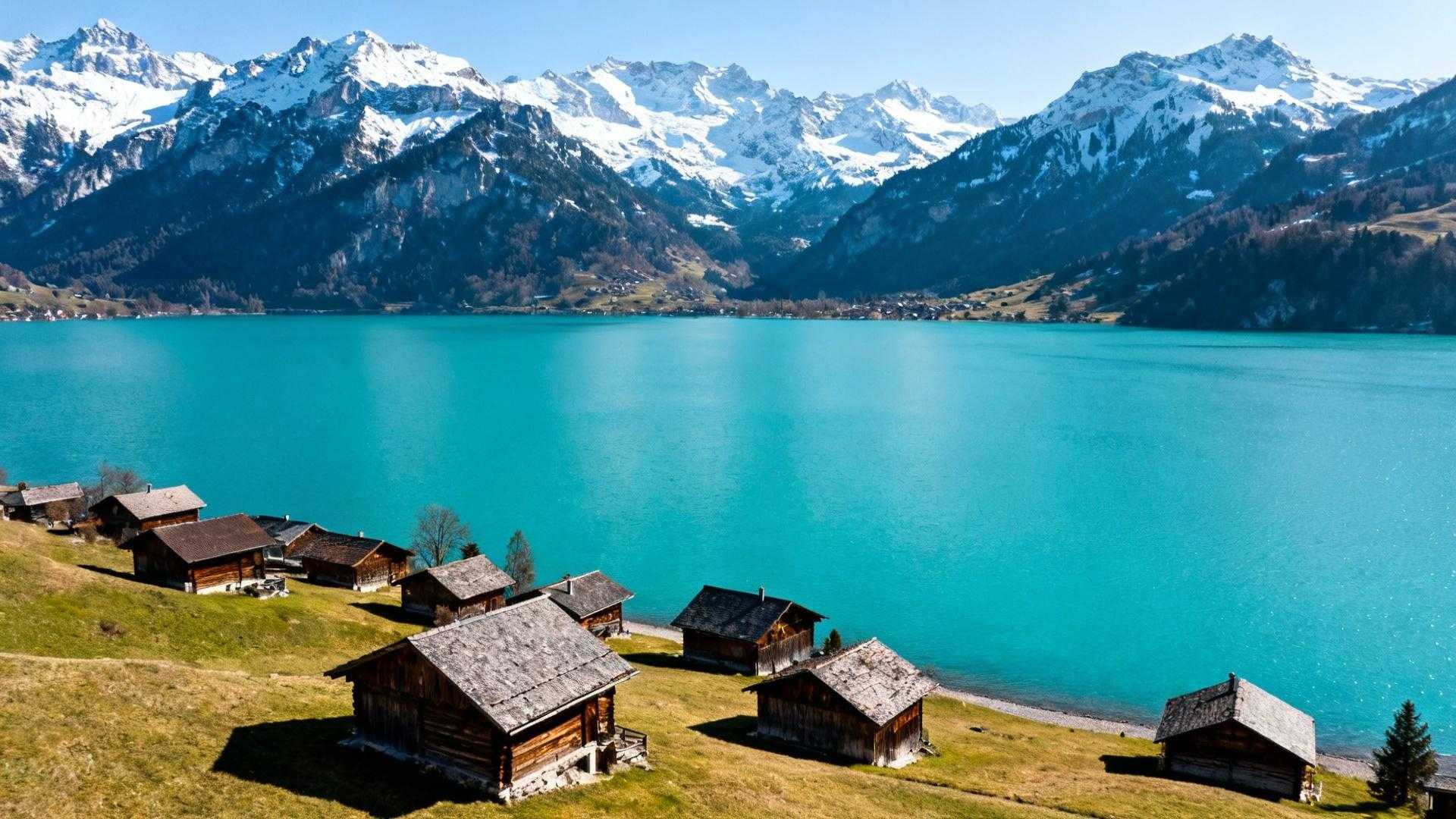 Tåget från Interlaken glider genom grön dal mot Brienz. Genom fönstret dyker turkos reflektion upp mot snötäckta bergstoppar. Detta är inte Comosjön där parkering kostar mer än en middag.