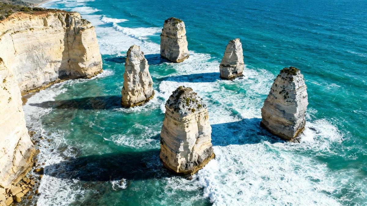 À l'aube, quand brume océanique se lève et premiers rayons dorent falaises calcaires, les sept sentinelles révèlent leur nature. Non monuments figés mais sculptures vivantes qu'on ne reverra jamais identiques. L'océan Austral continue son œuvre millénaire.